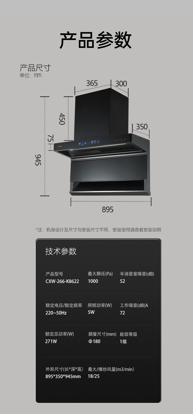 外形尺寸(長*深*高mm):895*363*945